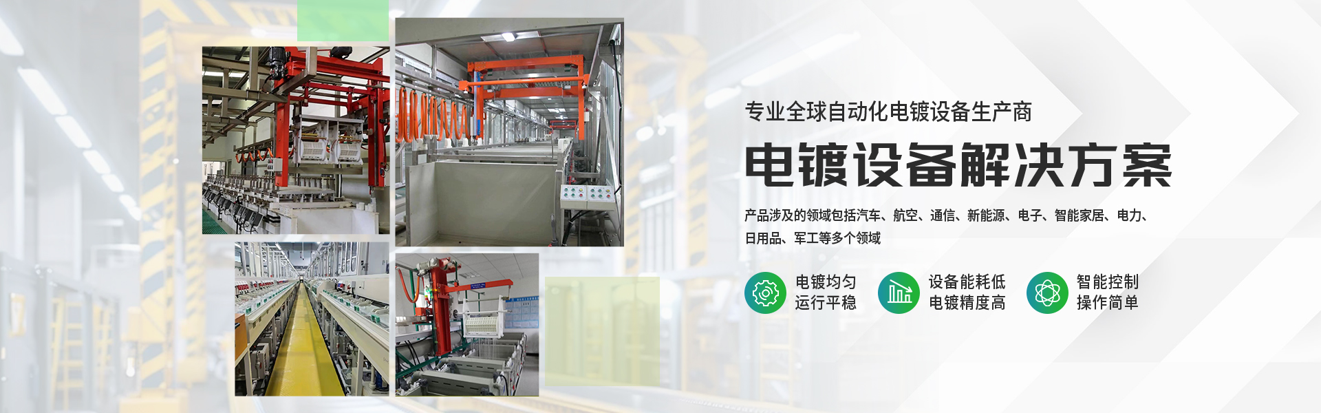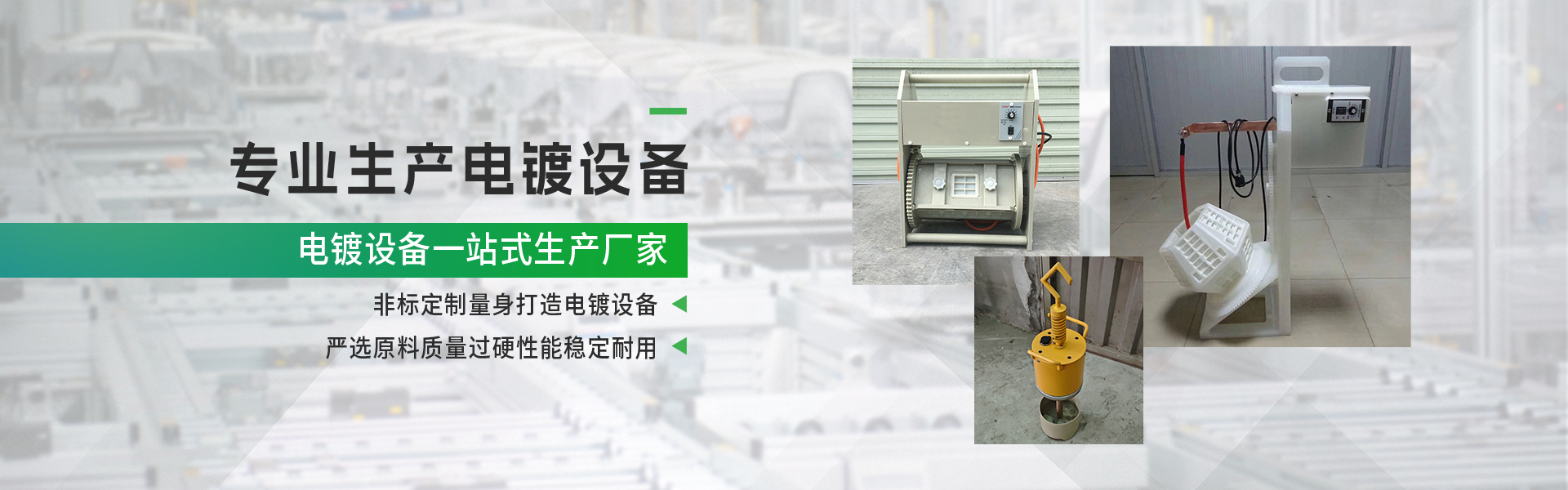 主要产品有电镀设备、全自动电镀设备、滚镀设备、全自动滚镀设备、阳极氧化设备、全自动智能阳极氧化设备、电镀滚筒、振镀机等。